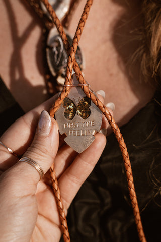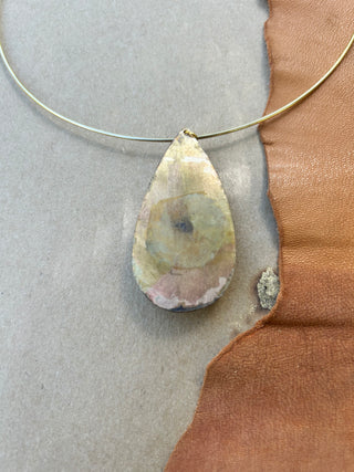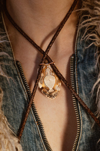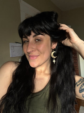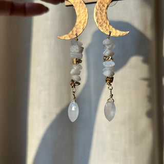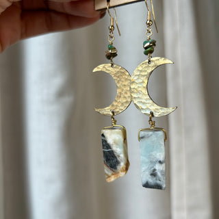 Bronze textured Moons with blue lace agate and faceted chalcedony