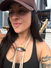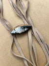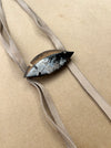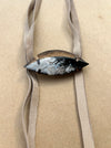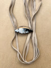 A beautiful piece of petrified wood that I used to create an abstract style bolo tie. The way the suede compliments the wood coloring so well is really special and unique compared to other pieces I've made.