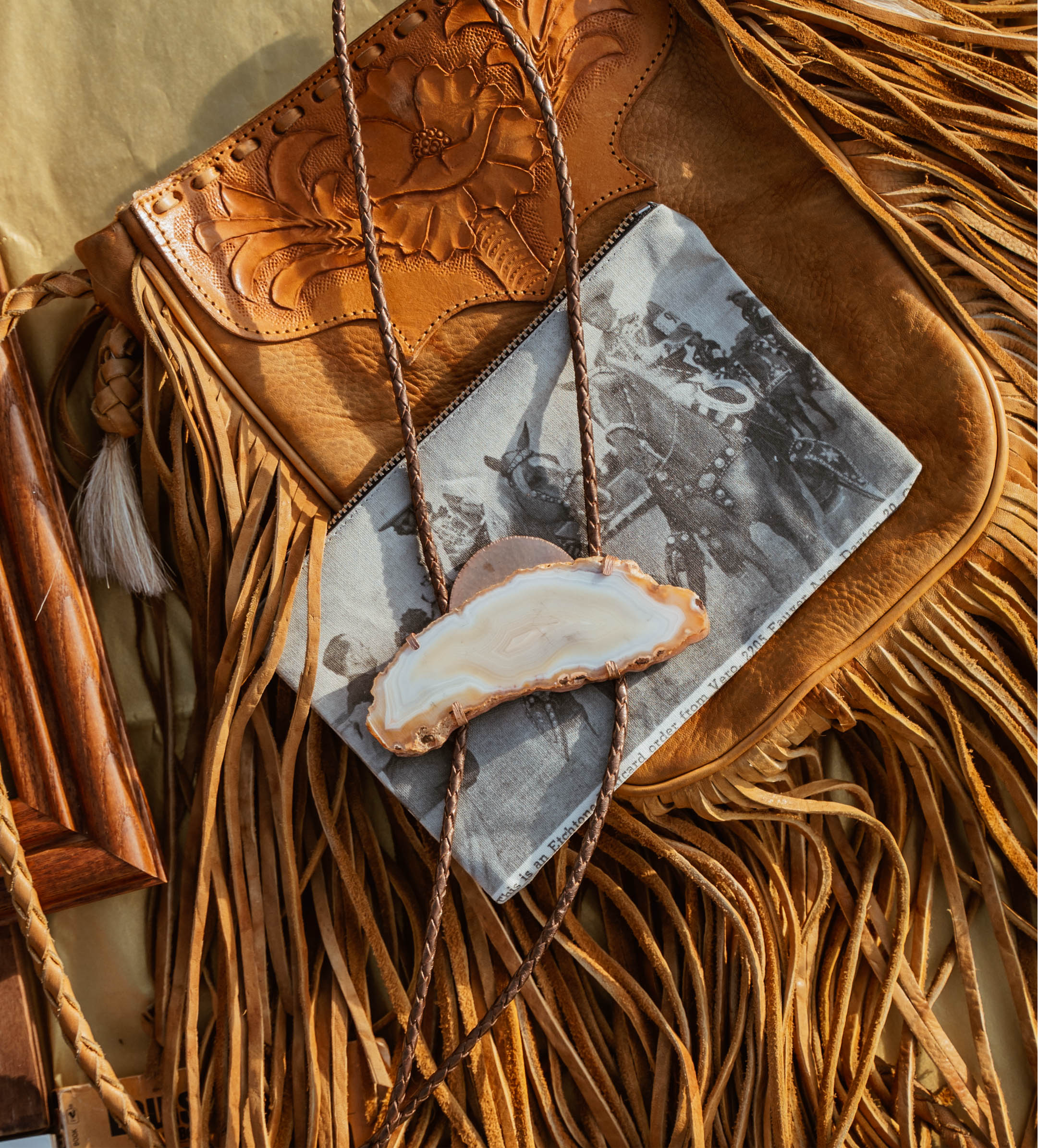 Cream lace Agate Bolo Tie - That Lucky Old Sun