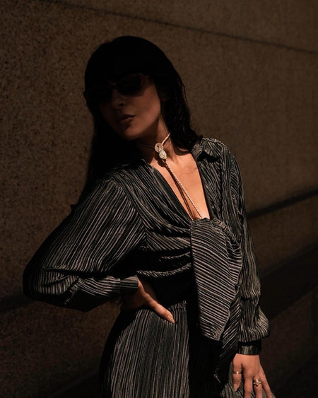 THIS COLLECTION IS A REPRESENTATION OF MY TIME SPENT IN ROME. I ABSOLUTELY FELL IN LOVE WITH THE LIVELY ENERGY OF THE CITY AND THE BEAUTIFUL ARCHITECTURE AROUND EVERY CORNER. THE NUMBER 2 IS HIGHLY SIGNIFICANT, ESPECIALLY WITHIN MY EXPERIENCE VISITING THE TREVI FOUNTAIN. THIS MONUMENT WAS SO INCREDIBLE I HAD TO SEE IT IN BOTH THE DAY AND NIGHT, VISITING TWICE IN ONE DAY. I THREW A COIN INTO THE FOUNTAIN AND MADE TWO WISHES. ONE WISH WAS TO CREATE DEEPER CONNECTIONS, THE SECOND WAS TO CONTINUE SEEKING CREATIVE INSPIRATION, BOTH OF WHICH ARE APPARENT IN THIS COLLECTION. I WILL CONTINUE TO EXPLORE THESE DESIRES AS I GO ABOUT DAY TO DAY LIFE WITH INTENTION. XX