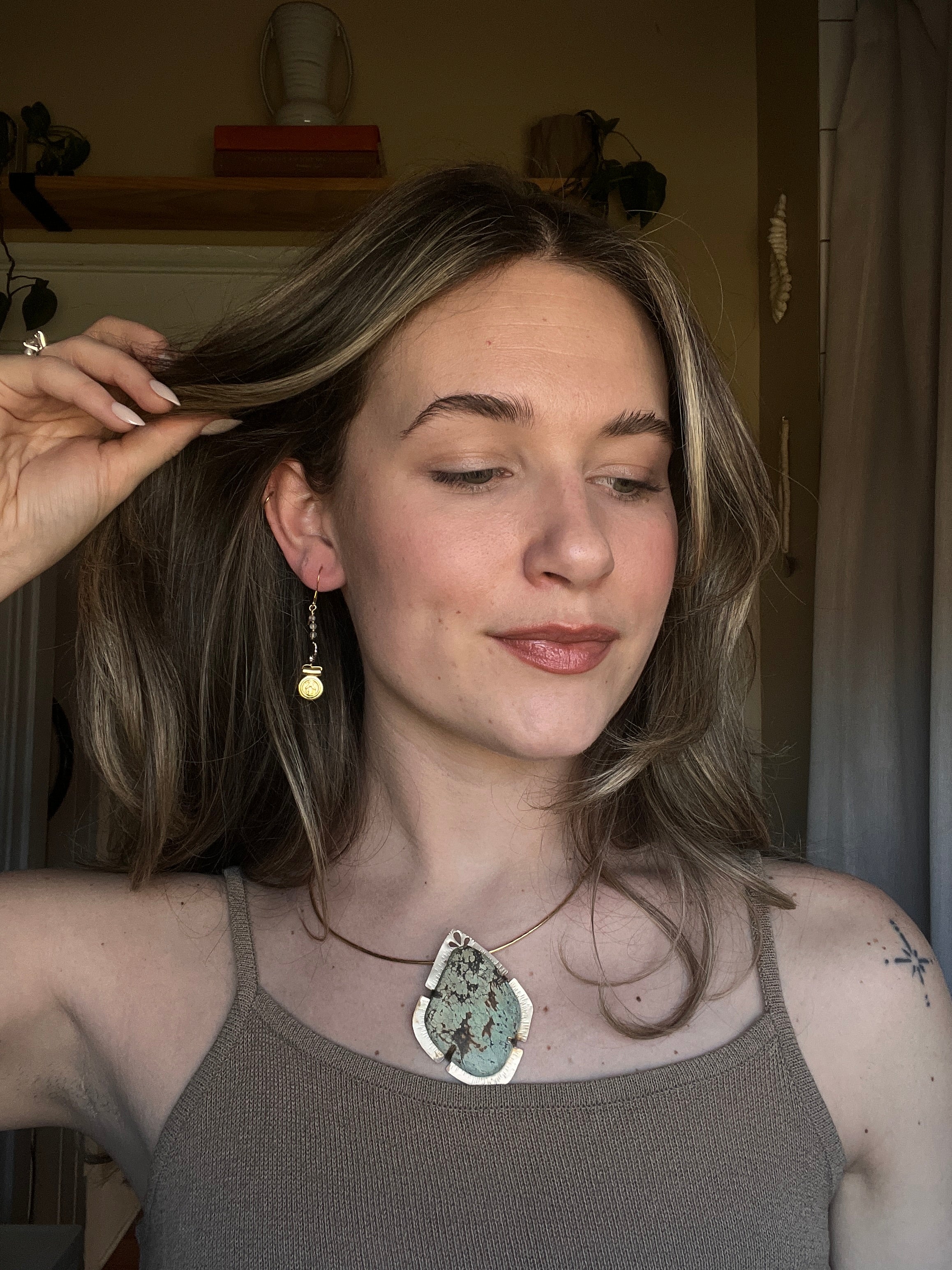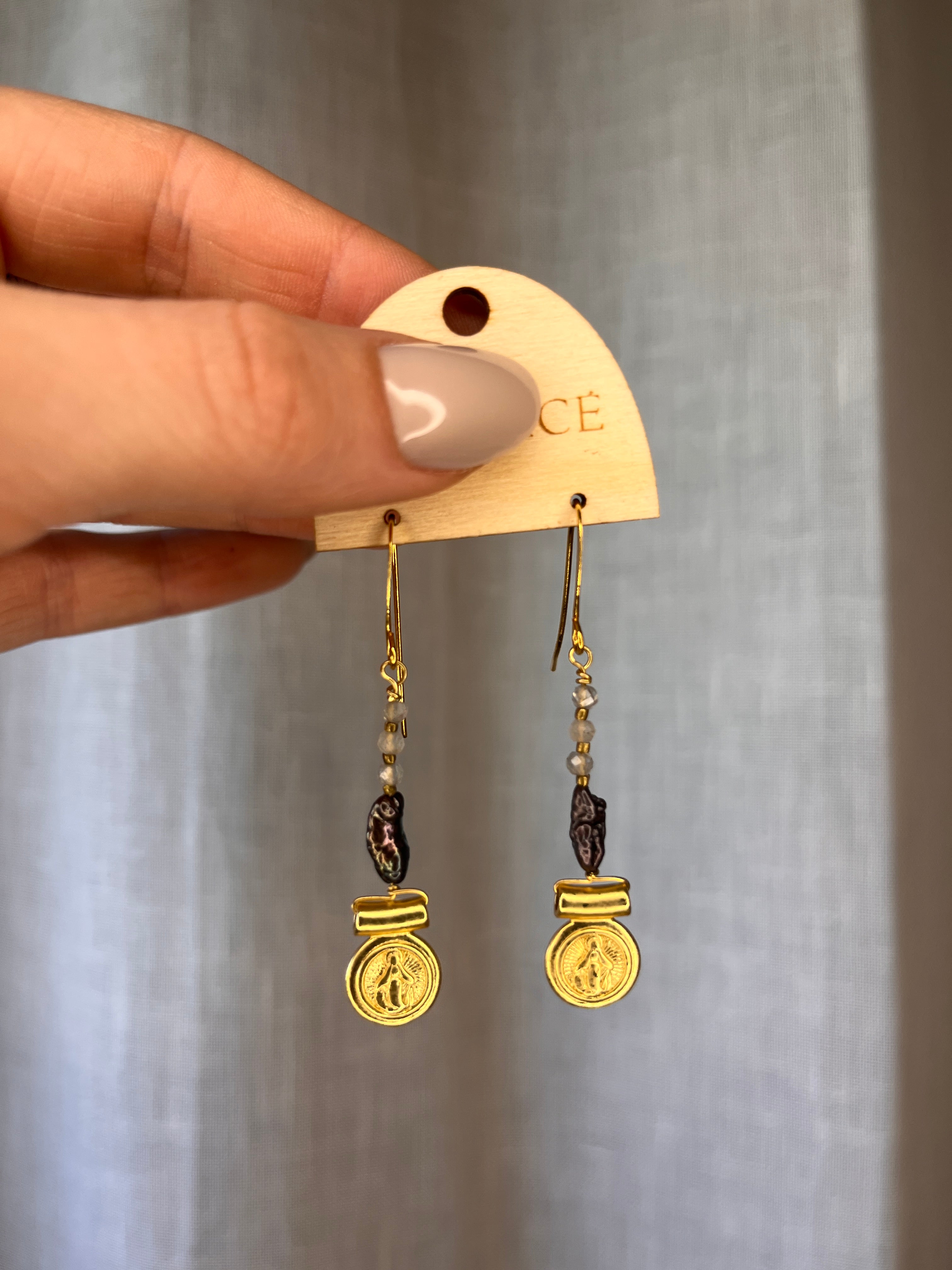 Chocolate moonstone Mother Mary earrings