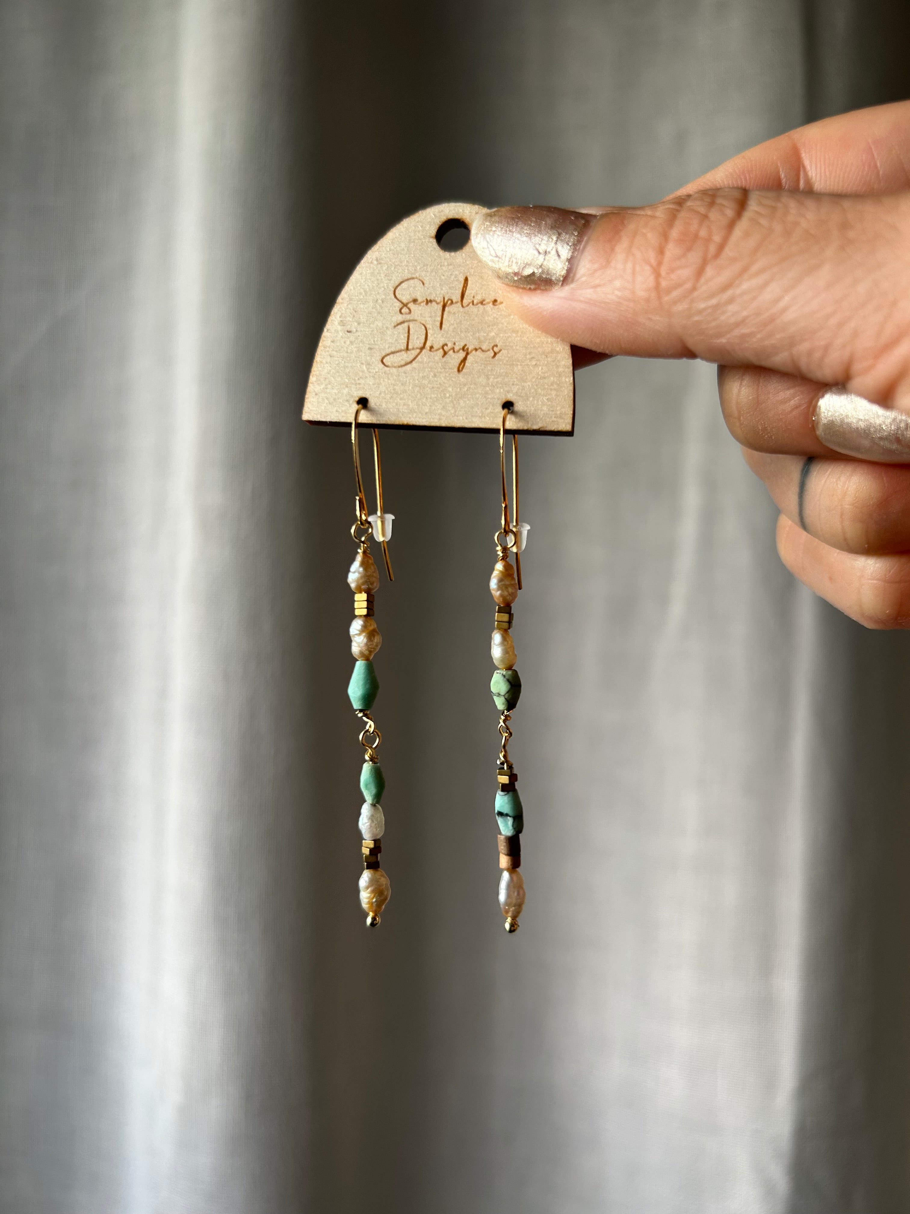 Pearl and turquoise simple earrings