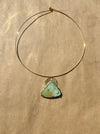 The wire sits at 18 inches. the ball on this brass choker wire is removable so you can interchange the pendants as you please! So fun