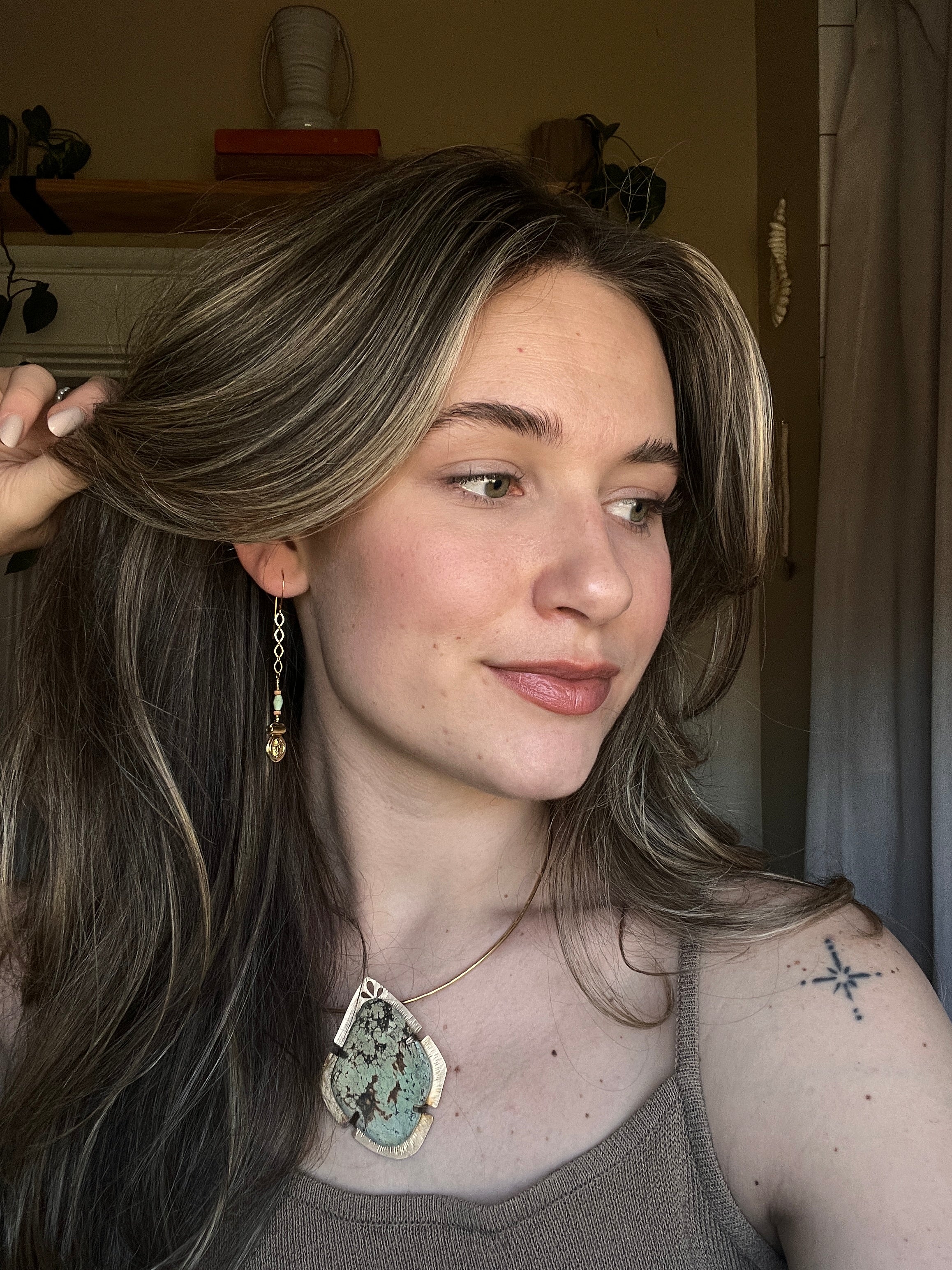 Mother Mary earrings with Turquoise and Terracotta