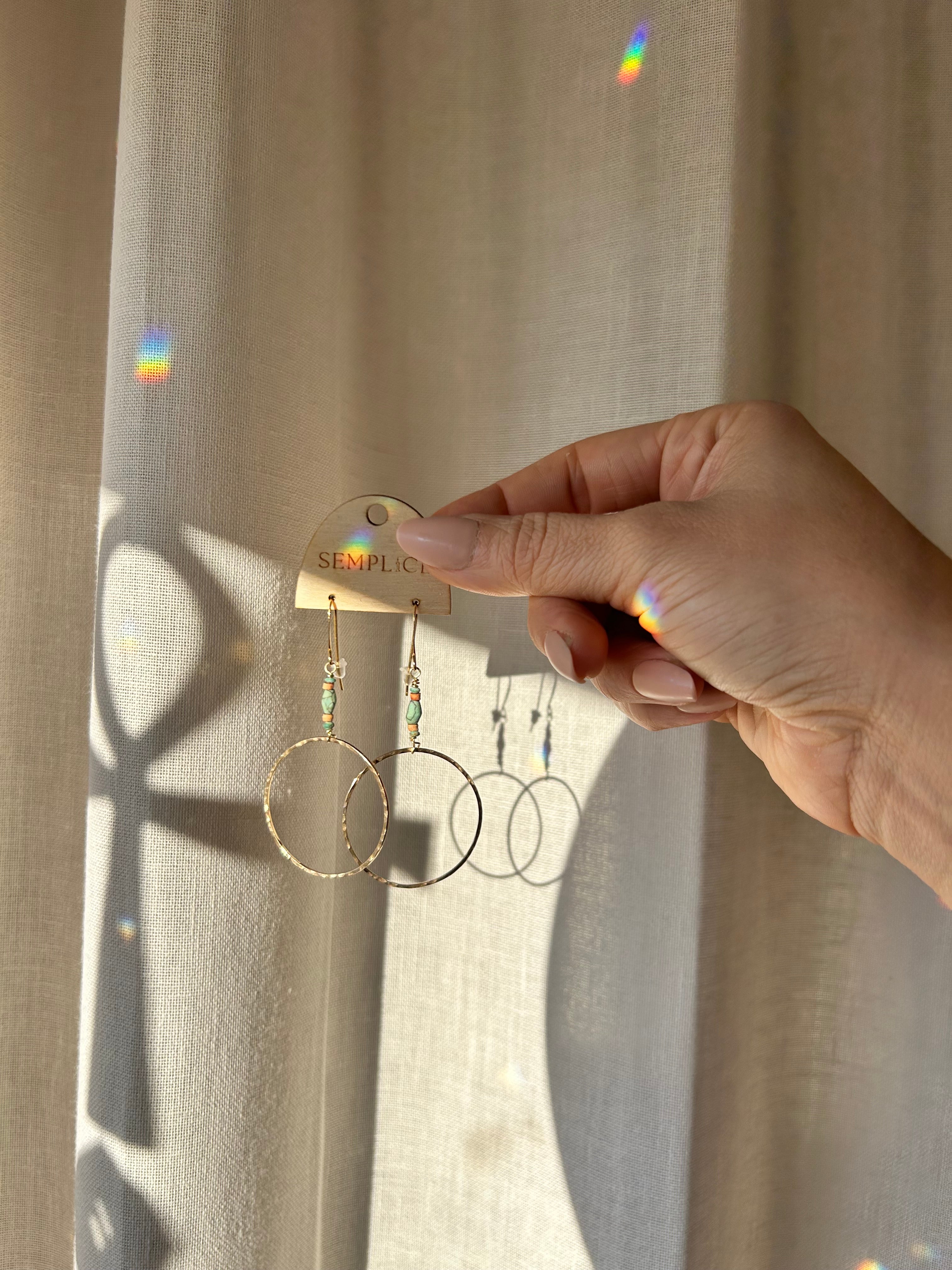 Turquoise and terracotta gold textured hoops