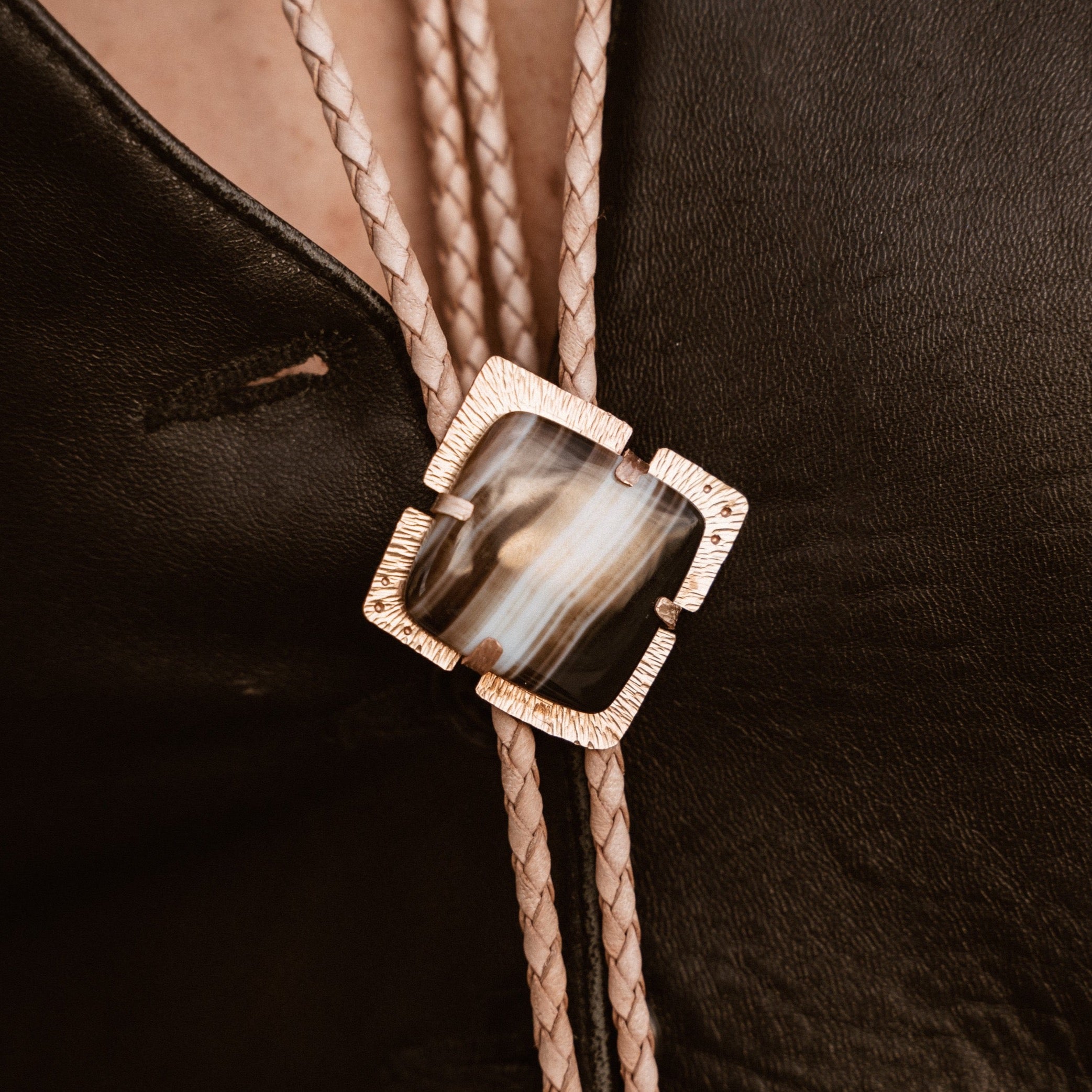 Black + brown Lace Agate bolo tie